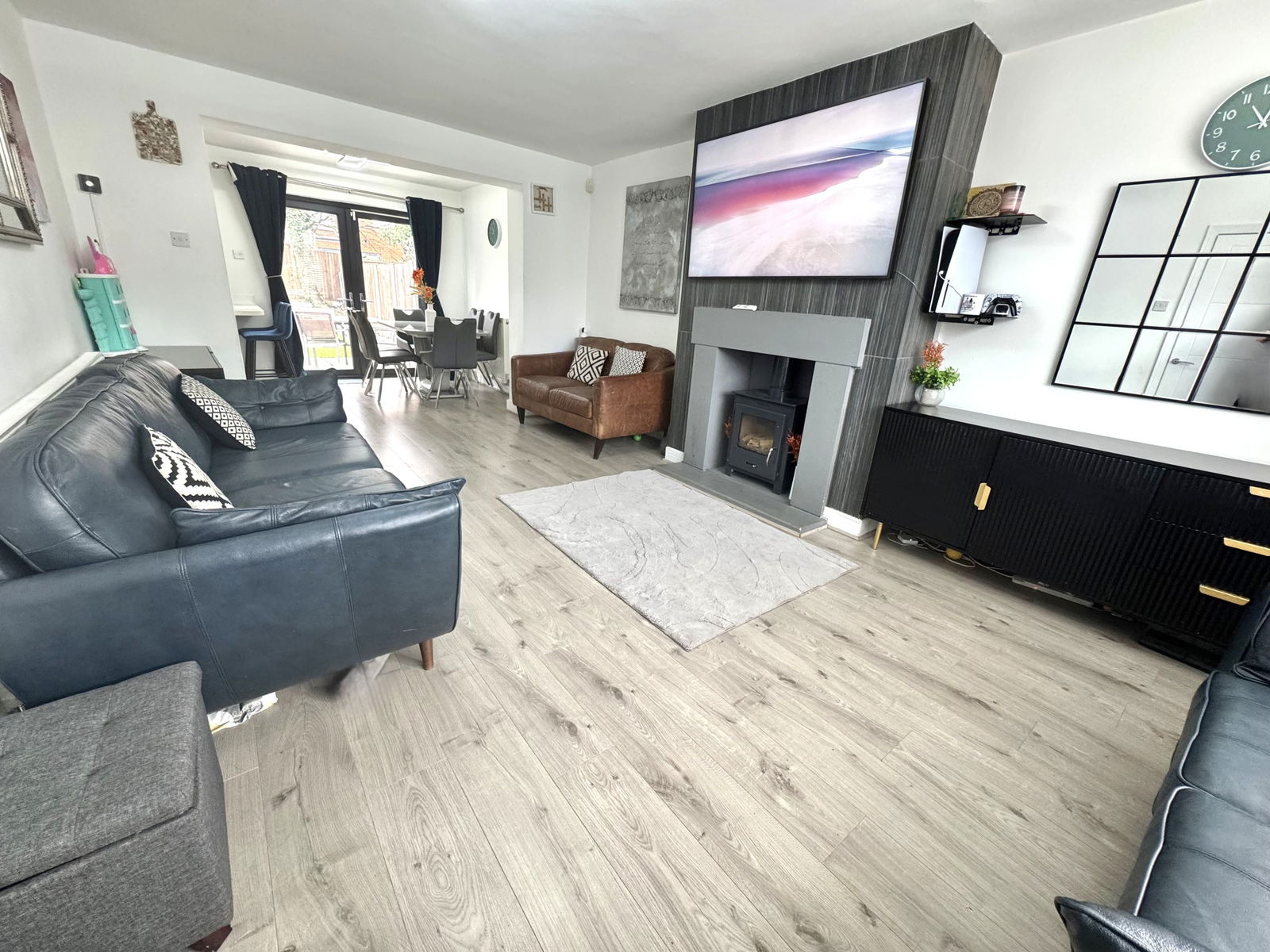 Upon entering, you are greeted by a welcoming atmosphere that flows into a large reception room, providing versatile spaces for relaxation and entertaining with a conservatory at the rear overlooking the gardens. The living areas are designed to maximise natural light and boast a large bay window and patio doors. The kitchen, conveniently located, offers functionality and access to the rear utility room and ground floor wash room.