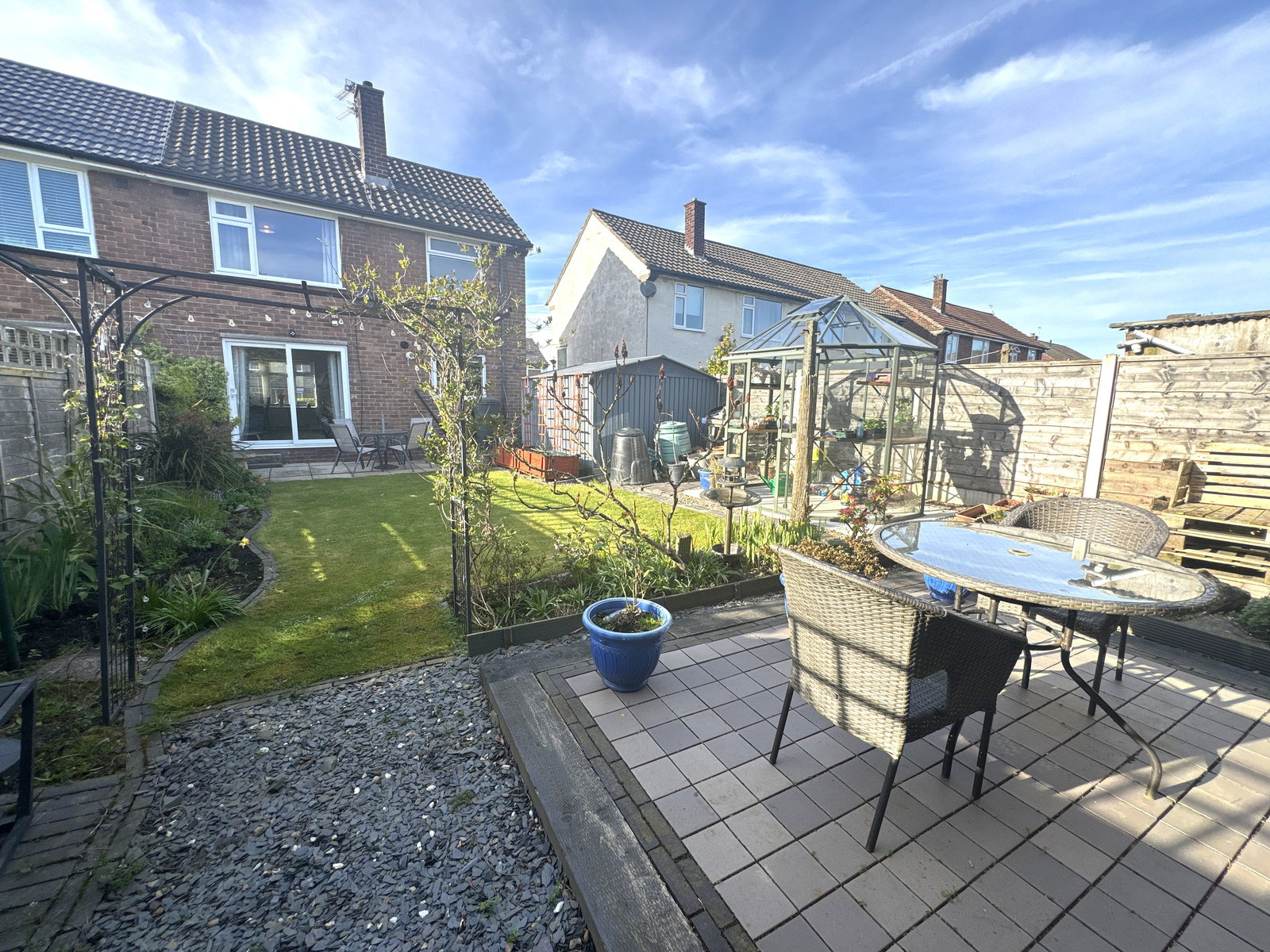 This beautifully maintained three-bedroom semi-detached home on Llanberis Road offers modern, move-in-ready living ideal for families or professionals. It features a bright hallway with W.C., a spacious living/dining room with a bay window and patio doors, three well-sized bedrooms, and a stylish family bathroom with a rain-head shower. Outside, there’s a landscaped rear garden with a new patio, ample off-road parking, and a garden store. Located in a desirable area close to well-regarded schools, the property is offered with no onward chain.