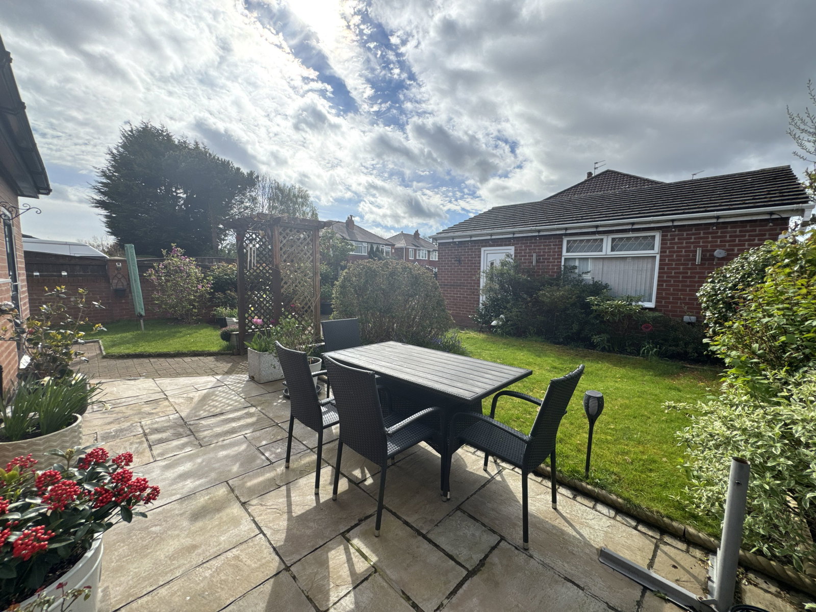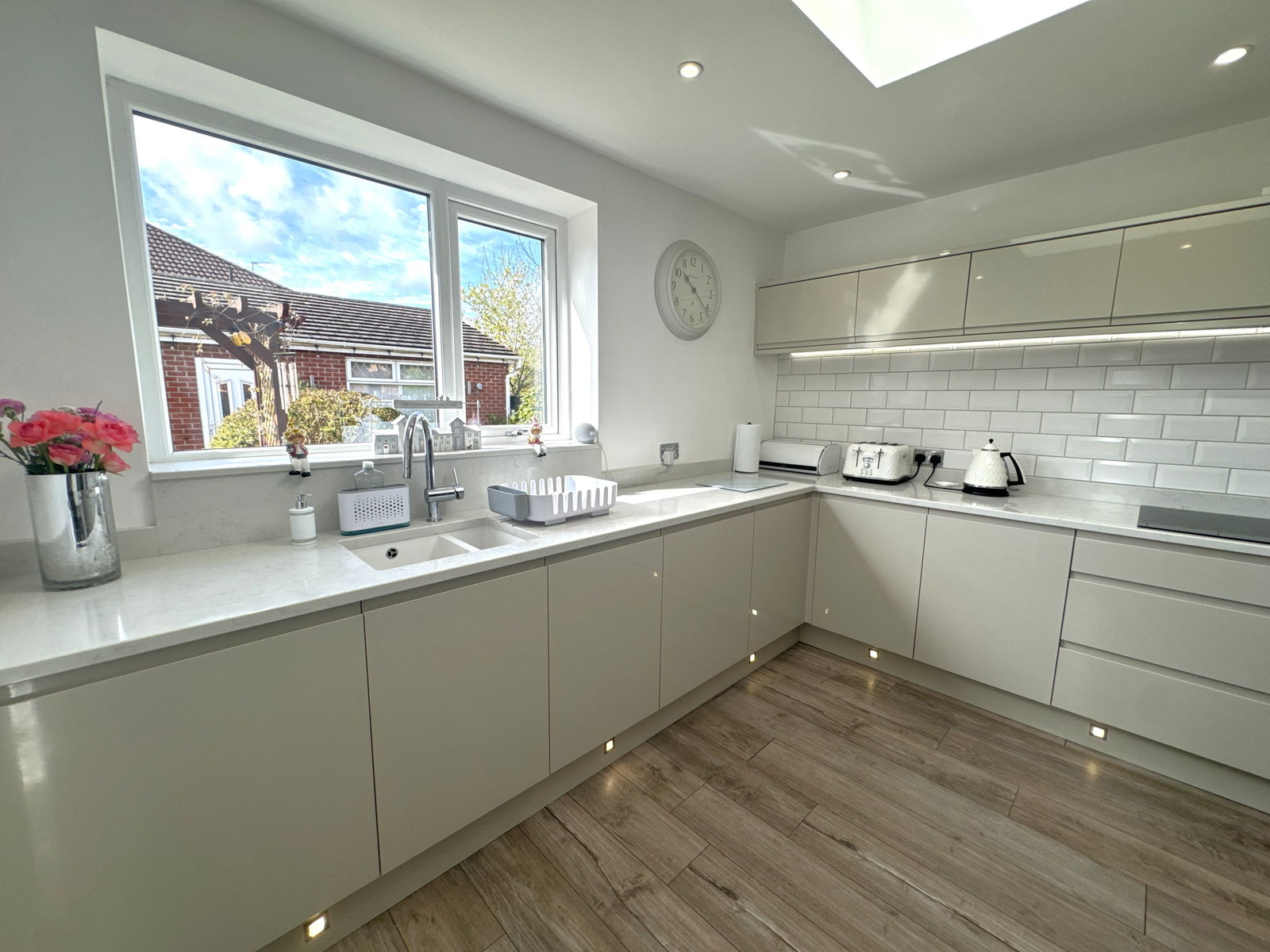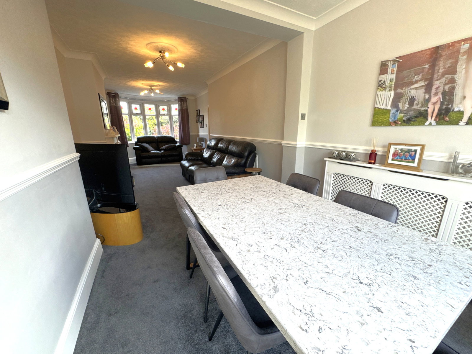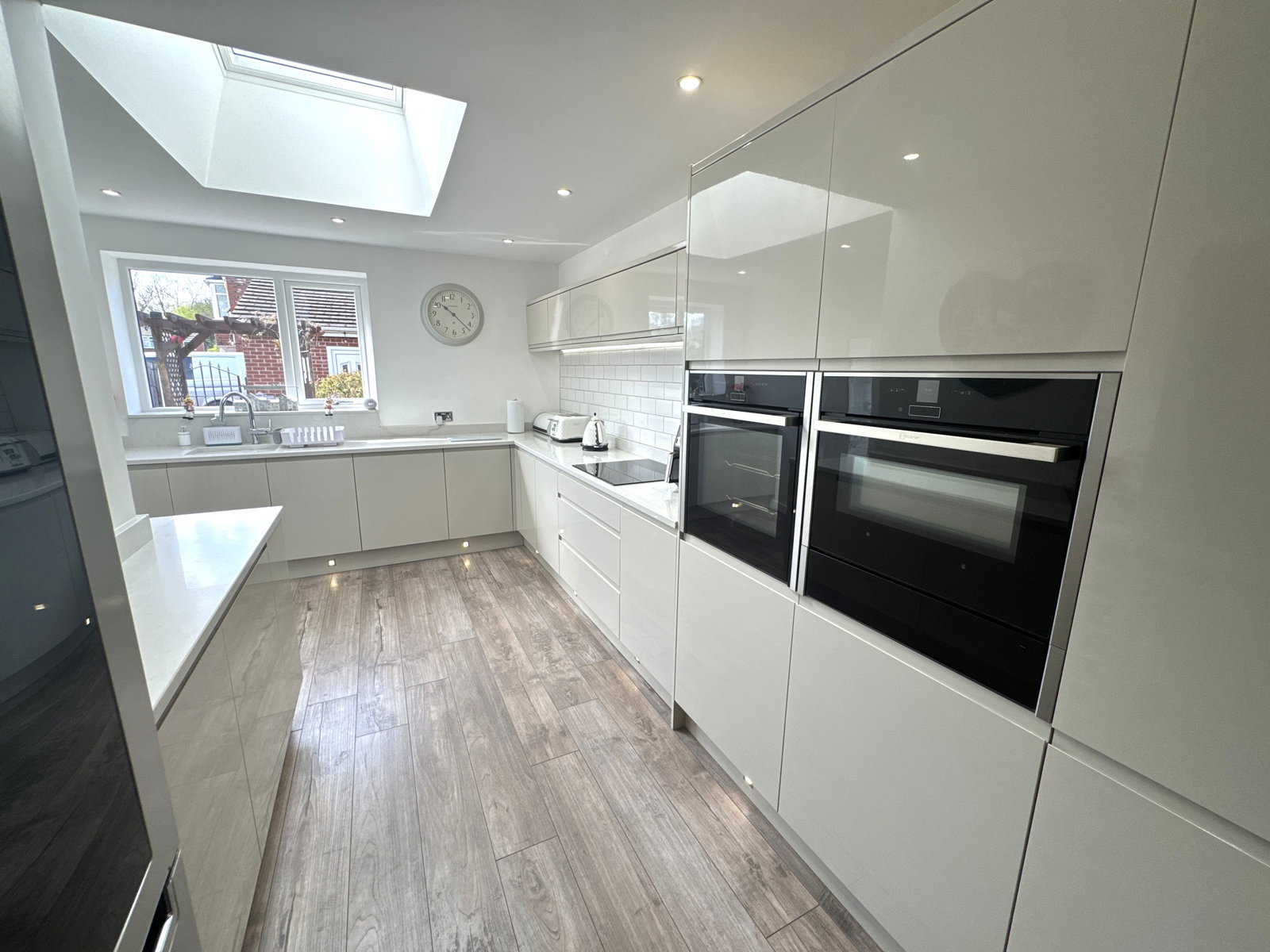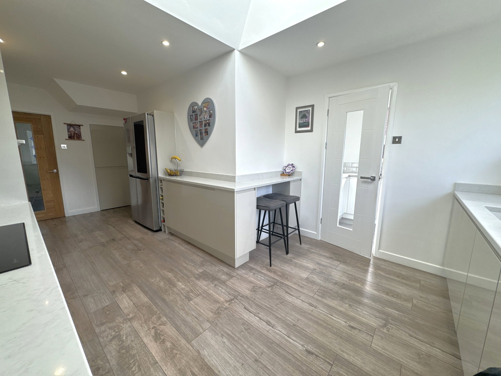 A spacious and well-presented extended semi-detached family home on a prominent corner plot near Cheadle Village. It features a bright bay-fronted living room opening into an extended dining area with patio doors to a large south-facing garden. The modern extended kitchen includes high-spec appliances and a breakfast bar, plus a separate utility room. Upstairs offers three generously sized bedrooms and a family bathroom, with an additional ground floor washroom. Outside, there’s a large garden ideal for entertaining, along with a detached double garage and secure gated driveway for parking.
