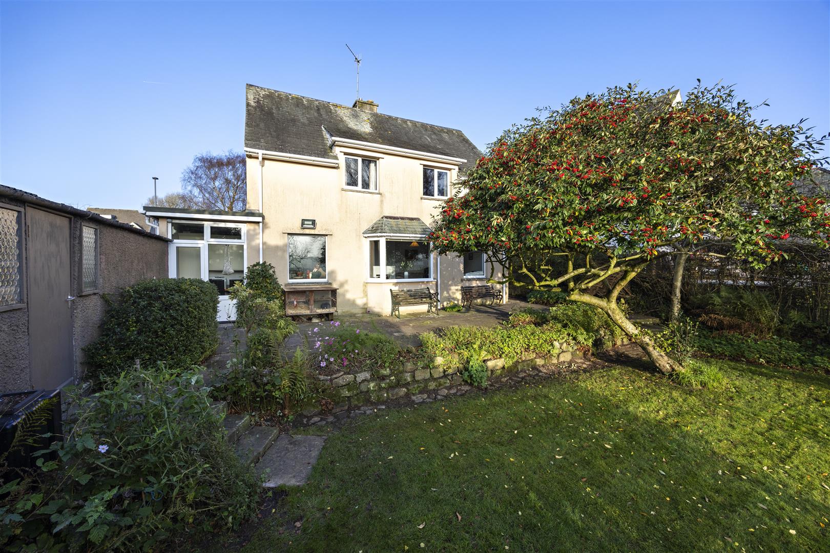 The property consists of a sitting room, kitchen/diner, utility room, office, downstairs cloakroom, 3 bedrooms and main bathroom. Externally there are enclosed front and rear gardens, detached garage, and parking for 4 cars.