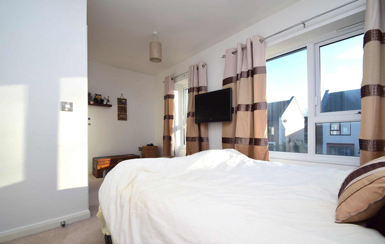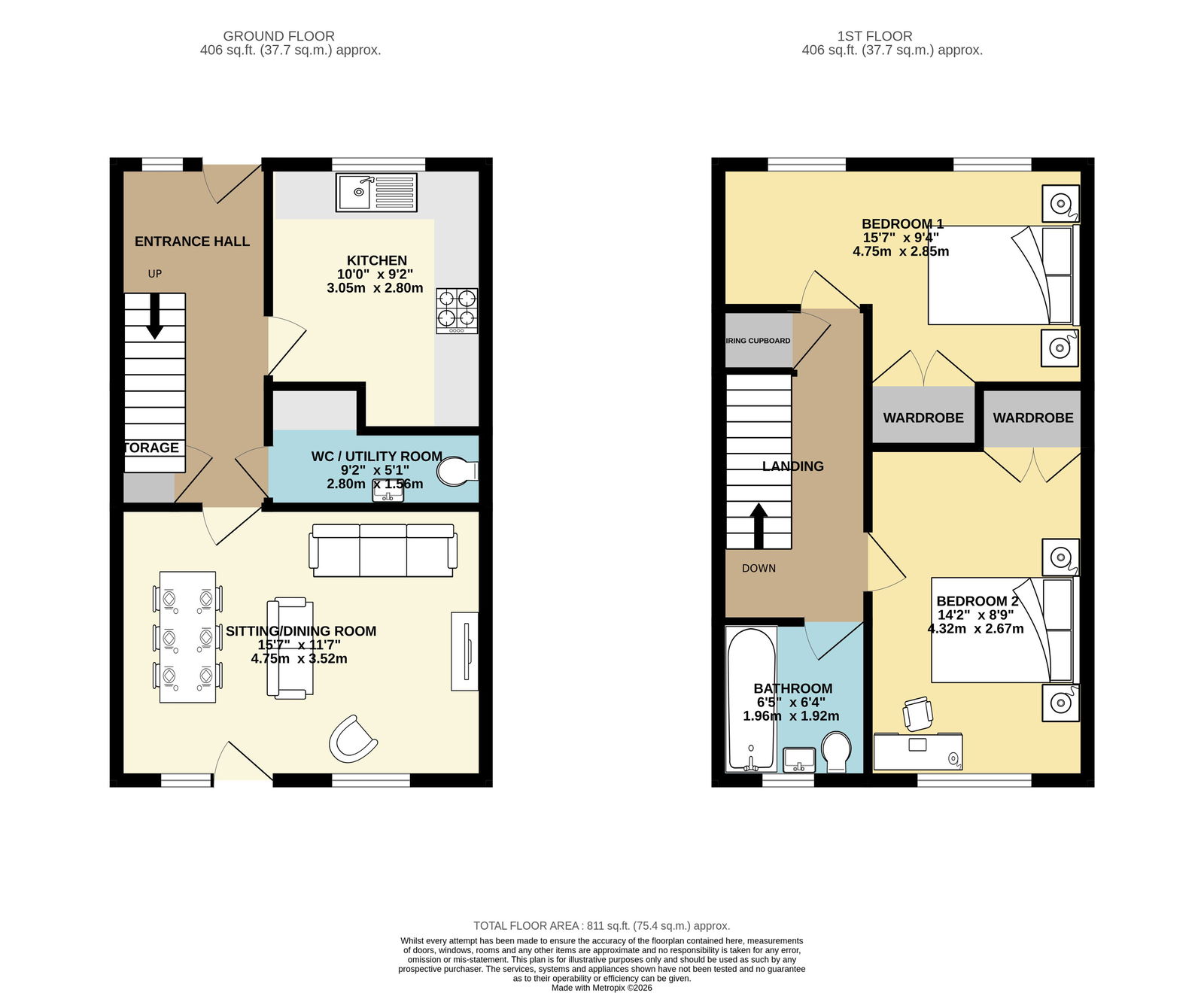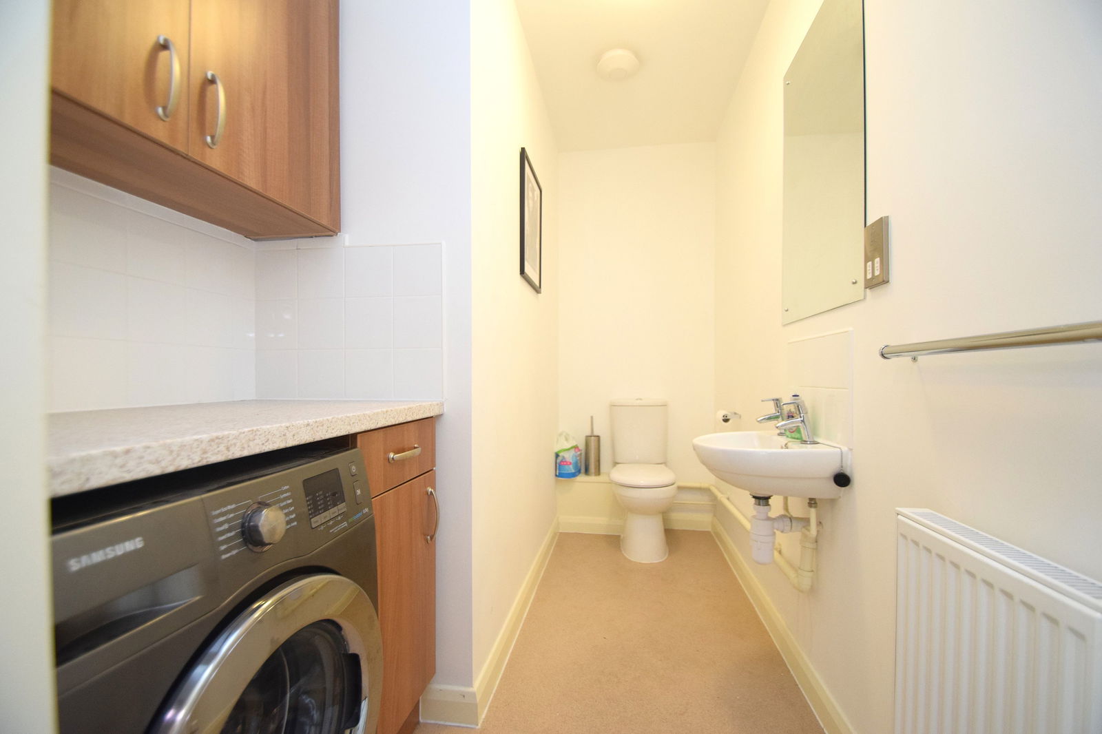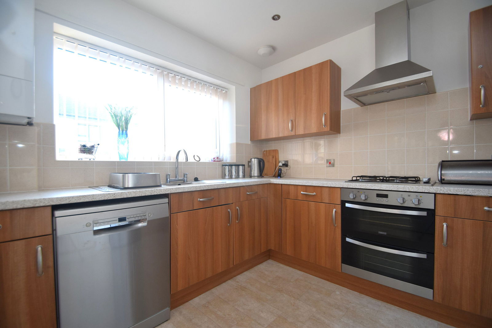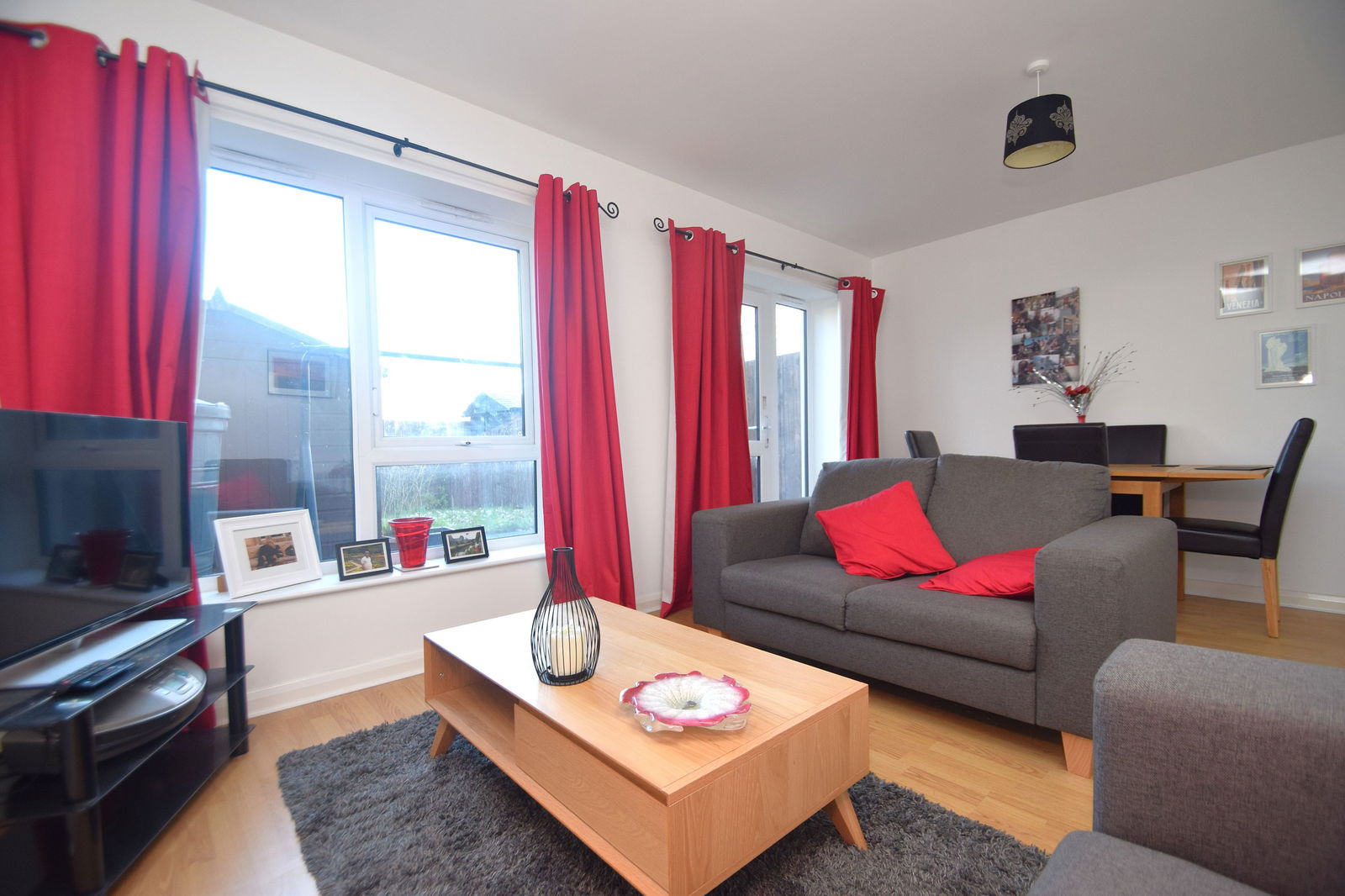 The ground floor features a bright and spacious open-plan living and dining area, finished to a high standard and designed for both everyday living and entertaining. The modern fitted kitchen benefits from integrated appliances, while large windows provide an abundance of natural light throughout. A convenient downstairs WC / utility room completes the ground floor accommodation.