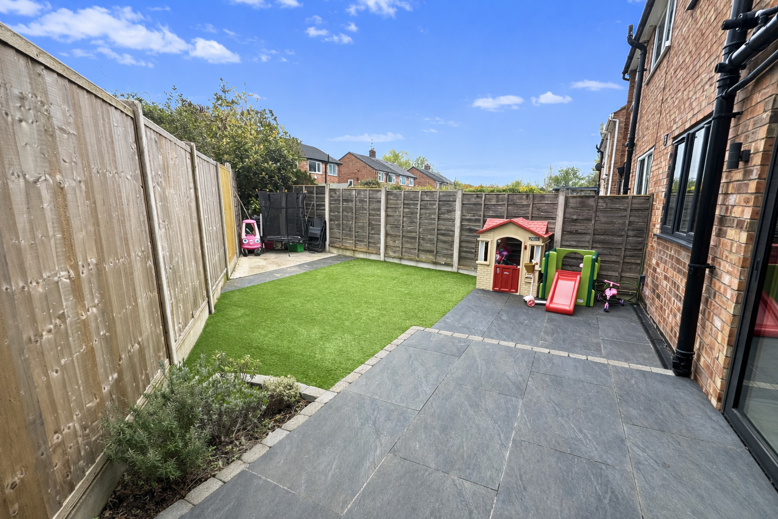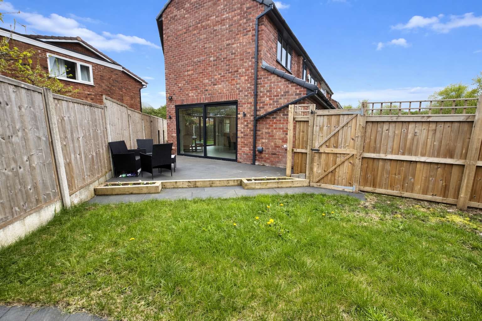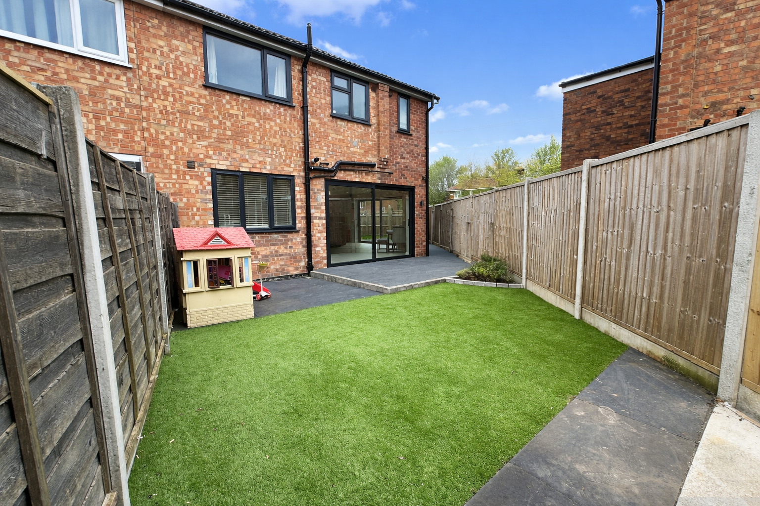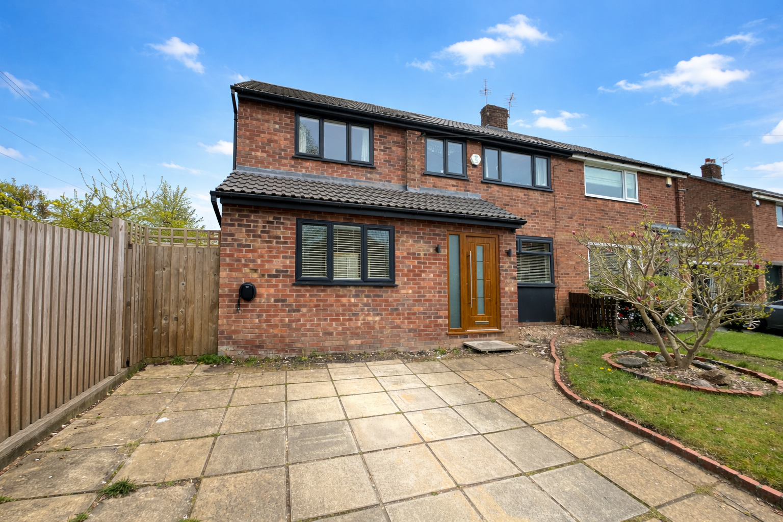 A Stunning Extended four-bedroom family home on a quiet cul-de-sac near Gatley Village. Stylish and move-in ready, it features a modern open-plan kitchen/living space with garden access, a separate reception room, and four spacious bedrooms including a master with ensuite. Also includes a family bathroom, ground floor WC, double driveway, and landscaped garden with patio areas.