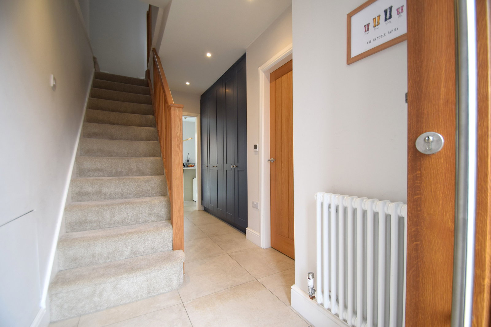 The accommodation comprises of an extended entrance hallway with bespoke fitted storage and under floor heating. To the rear of the home is the show stopping family living kitchen offering a magnificent space for both entertaining and relaxation. Two sets of sliding patio doors flood the room with natural l...