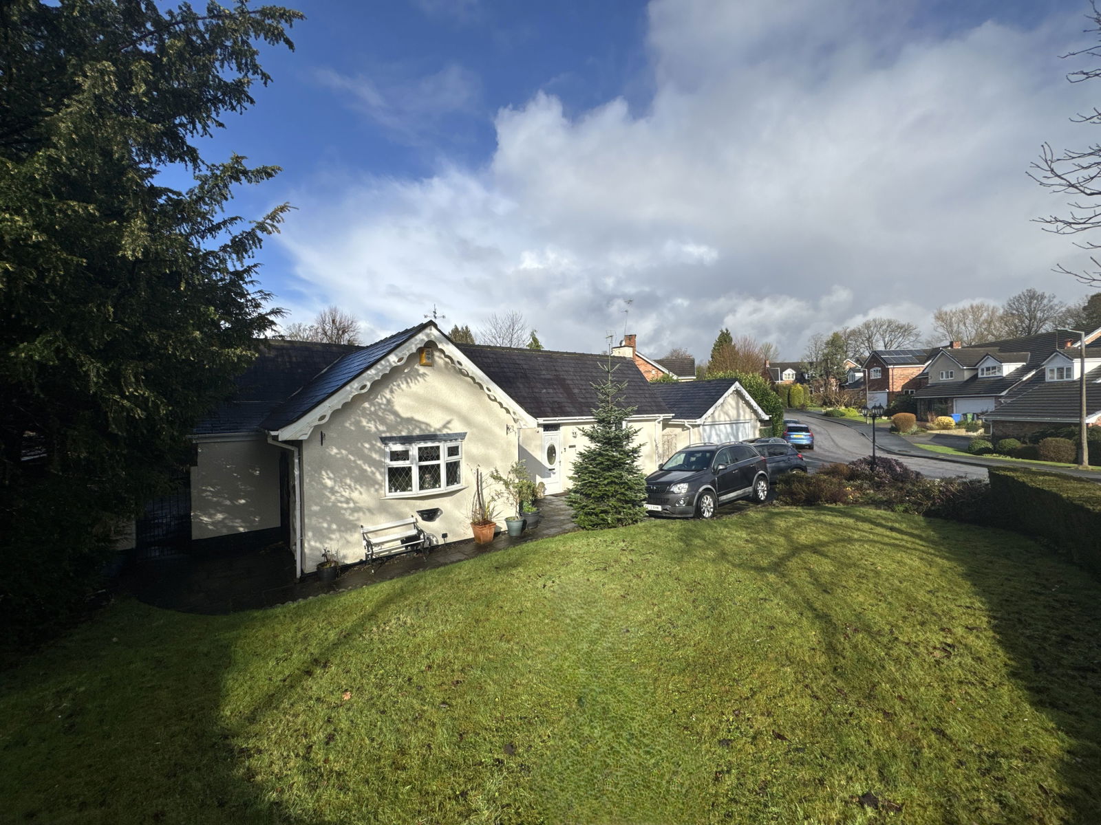 "The Lodge" is a distinctive two/three-bedroom detached bungalow located just moments from Bruntwood Park in Cheadle. Offering spacious single-level living, the property features two bright reception rooms with bay windows, a high-quality kitchen with breakfast bar and integrated appliances, up to three bedrooms, a family bathroom, en suite wash room, and an additional separate wash room. A rear conservatory overlooks the large corner plot garden. Externally, the home benefits from extensive lawned gardens, a driveway with ample off-road parking, and a detached double garage. Conveniently situated close to local amenities and transport links, this distinctive property combines character, space, and a prime location.