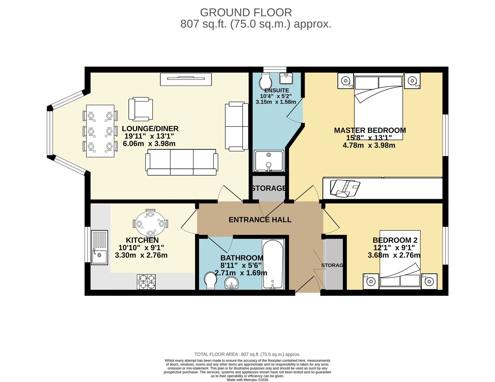 Situated on the first floor the apartment features a bright and spacious living/dining area, ideal for relaxing or entertaining, with a large bay window allowing plenty of natural light. The modern fitted kitchen is thoughtfully laid out with ample storage and worktop space. There are two well-proportioned bedrooms, both suitable for double beds or flexible use as a home office or guest room with the master bedroom benefitting from fitted wardrobes. A contemporary bathroom completes the accommodation...