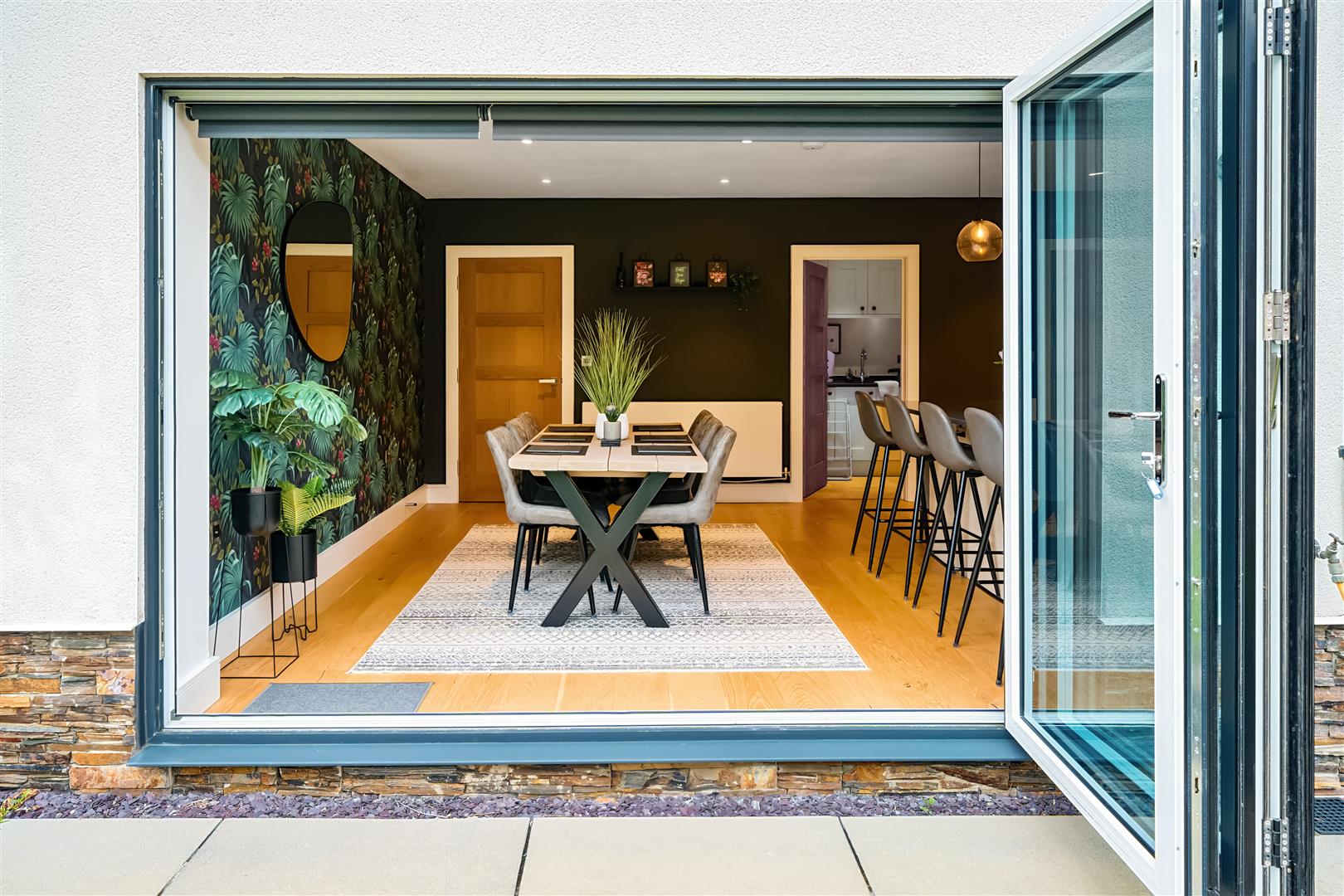 Description - An incredibly spacious entrance hall with solid wooden floor welcomes you inside with the inviting sitting room immediately to your lefthand side. This fantastic room with its rich forest green hue, offers a very sumptuous yet cosy feel.